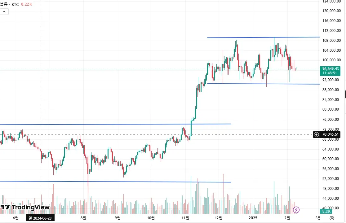 조금은 긴 횡보구간이 있었다. 그만큼 5만달러에서 8만달러사이에서 장기간에 걸쳐 올라갈 매집을 한것으로 보입니다. 때문에 계속해서 74K구간을 테스트를 했는데 번번히