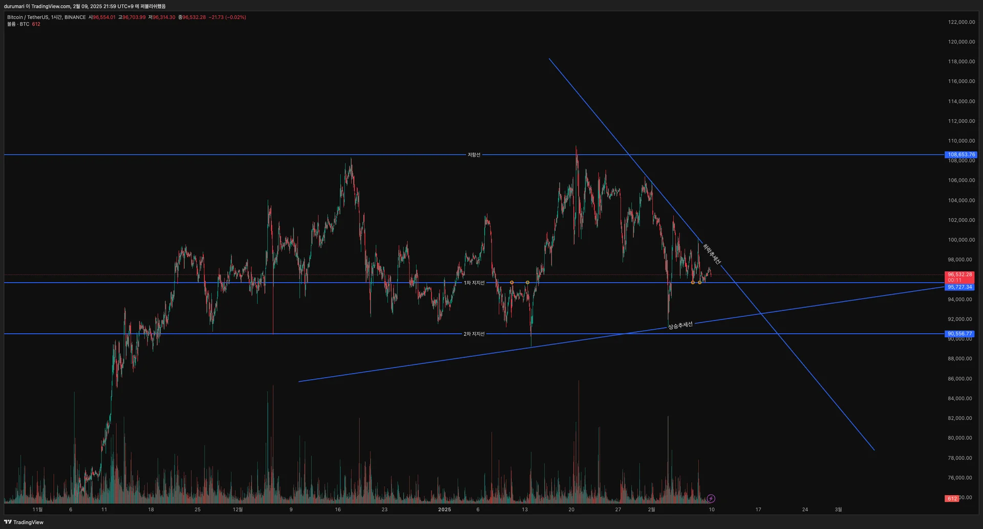 - 최근에 1차 지지선 아래로는 내려가지 않는 모습을 보임