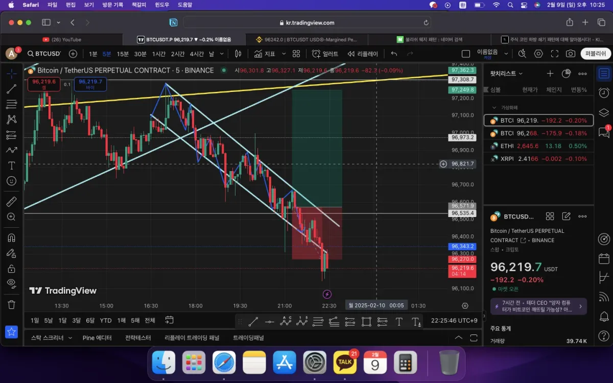 96535 라인에 저항 확인되어 롱 포지션 진입했고 손절 라인 까지 도달해서 손절