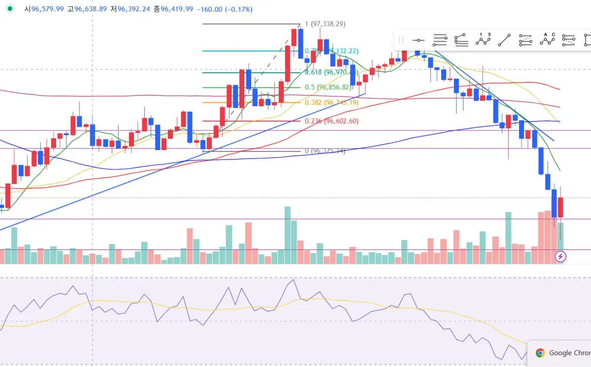 전반적으로 하락세이긴 하나 RSI가 반등한다고 판단하여 매수를 하였으나 이후 하락세가 지속되어 손절하였습니다.