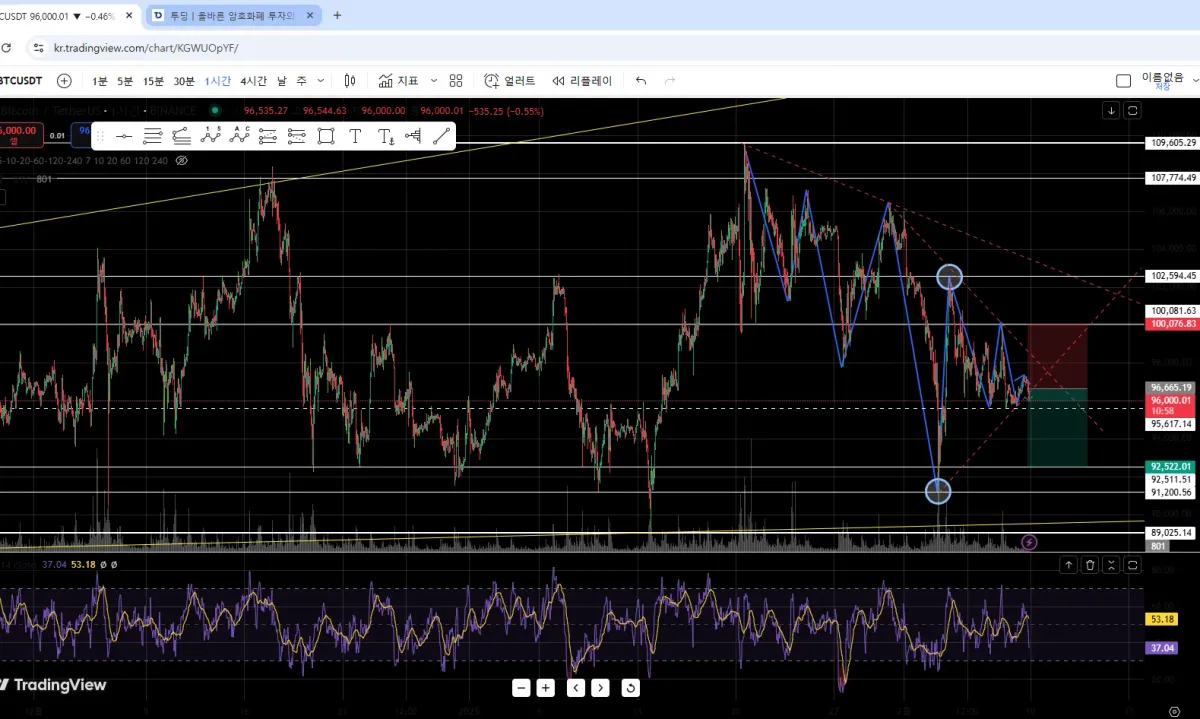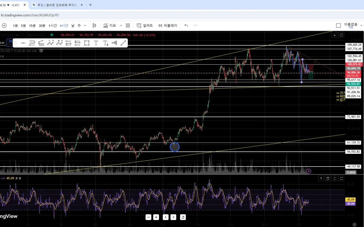 1시간봉보다는 일봉일 때가 작도하는 게 어렵습니다. 오늘의 시점으로부터 얼마나 전 까지를 포함해서 해야 하는 건 지 잘 모르겠습니다.