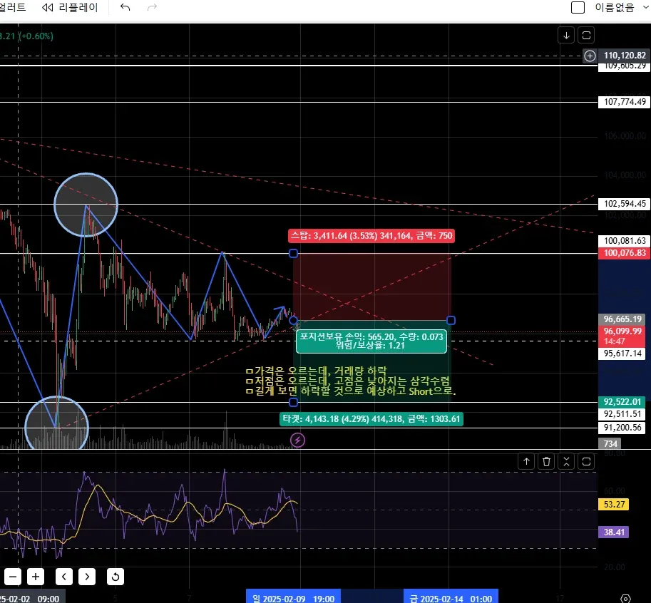 -> 하락할 것으로 예상하고 Short으로 거래함, 목표 값은 아직 도달하지 못했으나 과제인증이 필요해서 매매일지 작성함.