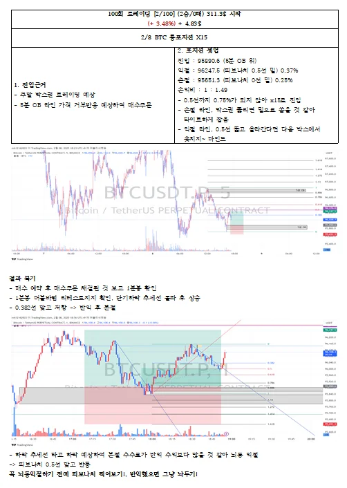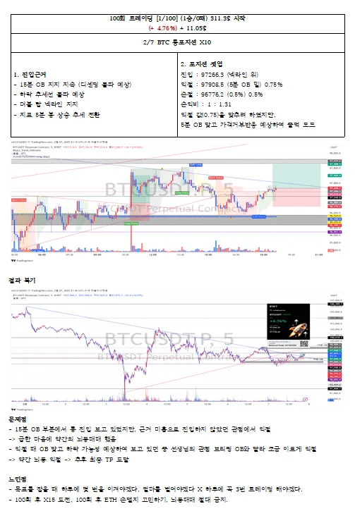 한 번의 매매로 600가까이를 잃은 뒤 가지고 있던 현물을 팔고 300USDT를 가지고 현재 우등생 방에서 진행하고 있는 100회 트레이딩에 도전하고 있습니다.