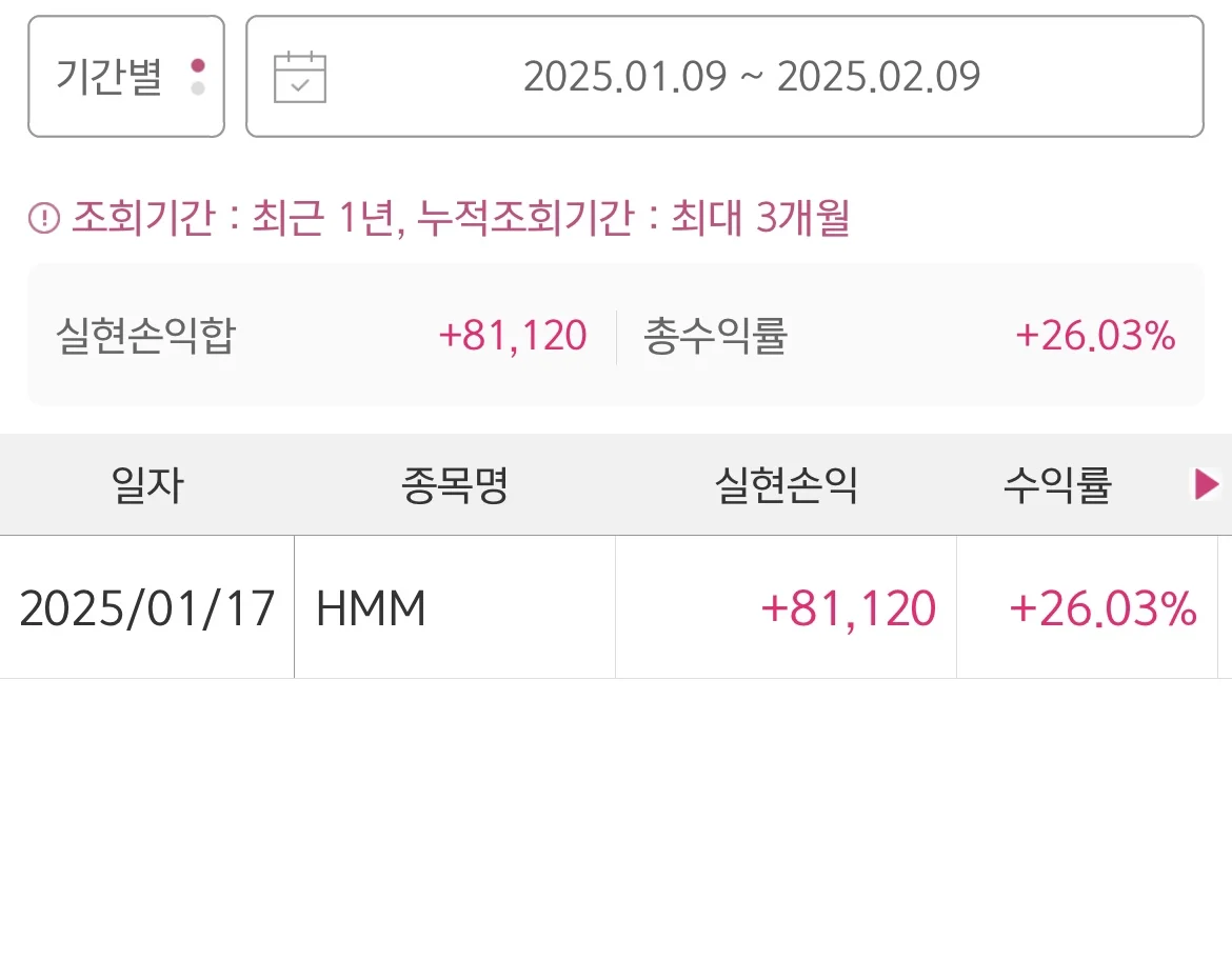 이번 주말동안 모의트레이딩을 진행하지 못해 일단 국내주식 매매내역으로 인증해보았습니다.