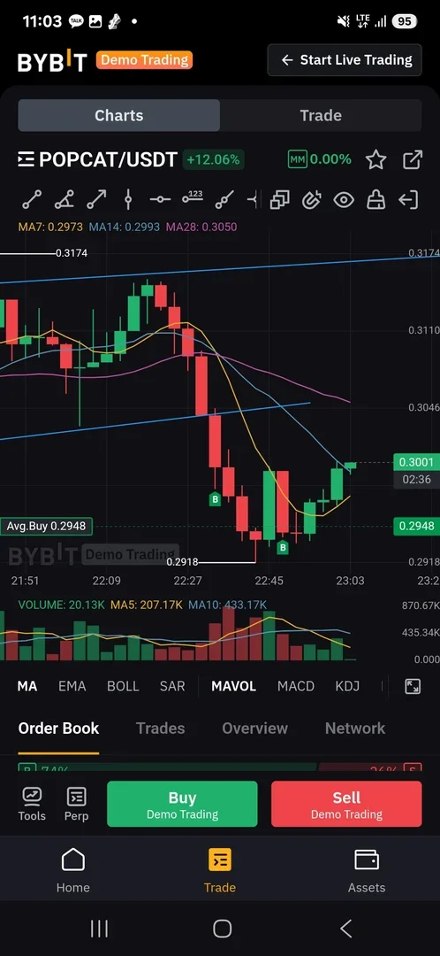 큰화면으로 보다가 모바일로 보니까 좀 헷갈리는것 같아요. (일단 지지저항선을 긋다가 손으로 잘못 건들여서 선들은 좀 움직인 상태입니다.) 차트가 상승추세선에서 지지받던 캔들이 지지선을 뚫고 내려오며 추세전환이 연출되었다고 생각했습니다. 이에 숏폼 진입을 해보려 했습니다. 근디 어플도 어렵고 동영상 보면서 하니까 원하는때에 빠르게 매도 매수 하기가 어려웠습니다. 화폐의 단위도 낯설고... 그래도 열심히 차트보는 시도를 해서 연습해보겠슺니다.