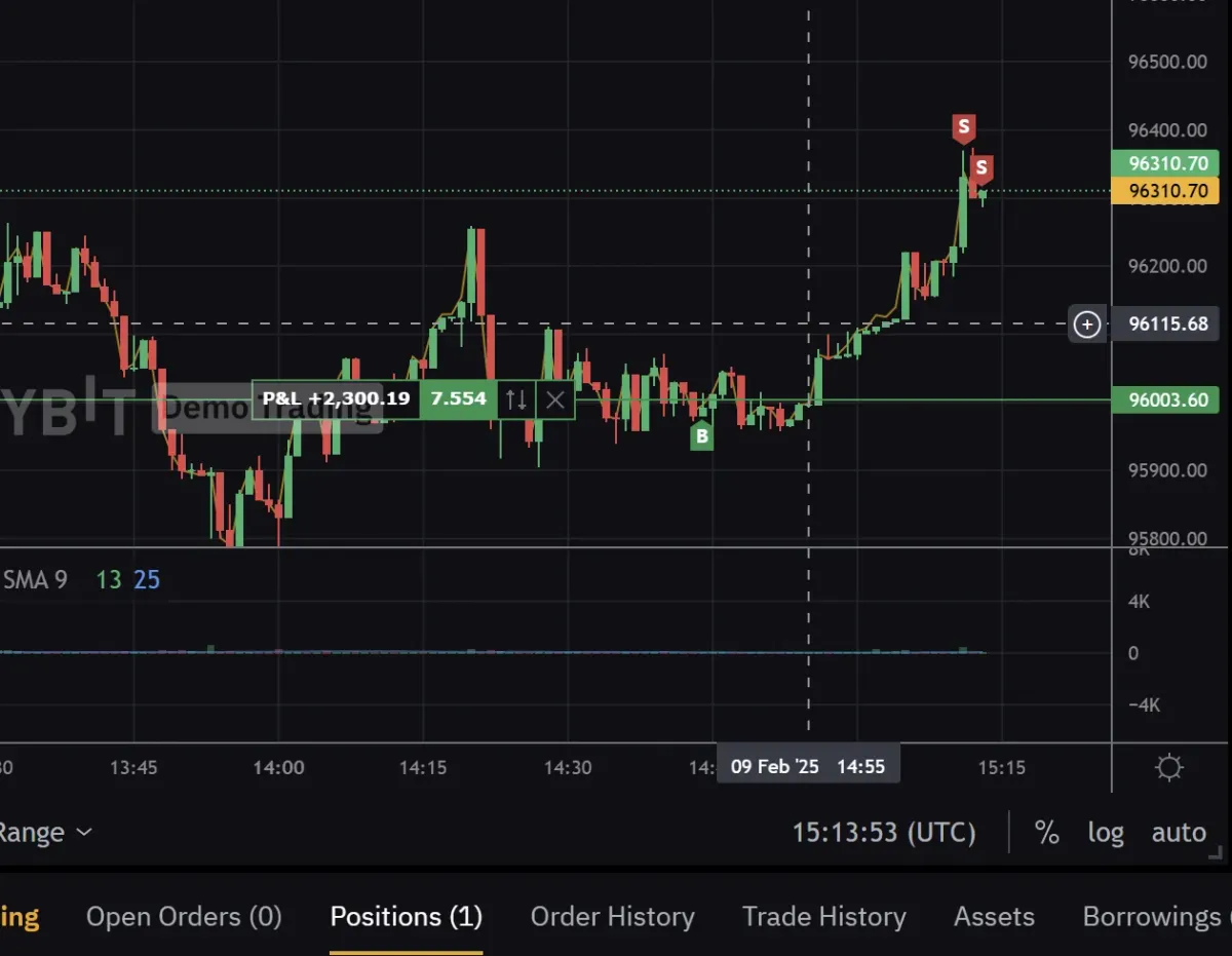 저항선인 1차 익절가 96300, 손절가 95814 로 목표 잡았습니다.