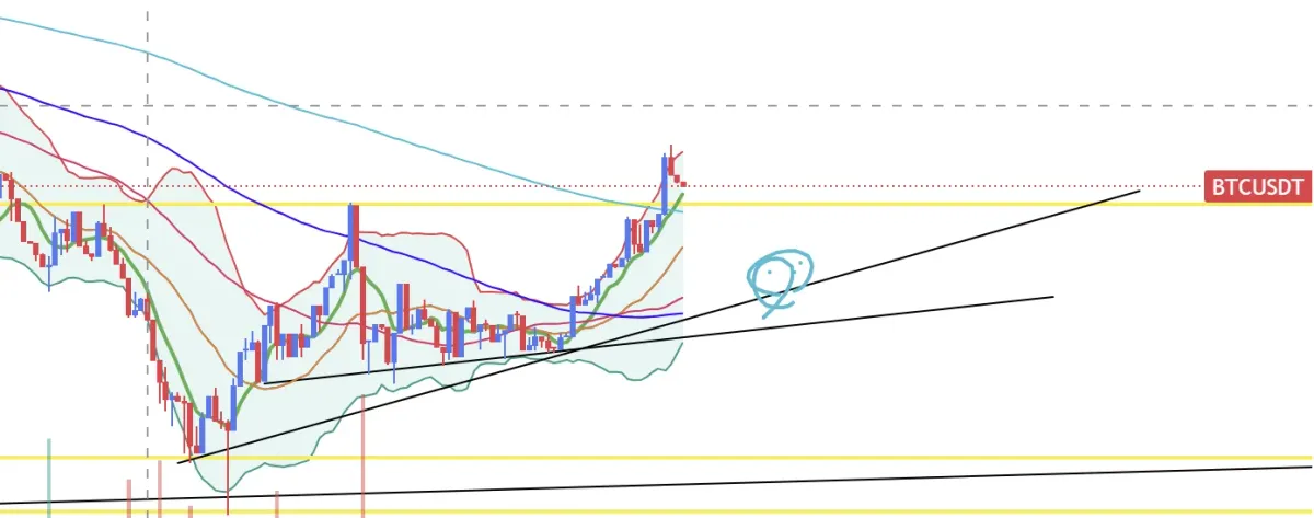 1차 익절가 도달했고 1차 저항선인 96300이 돌파되어 지지선으로 바뀐걸 볼수 있습니다.