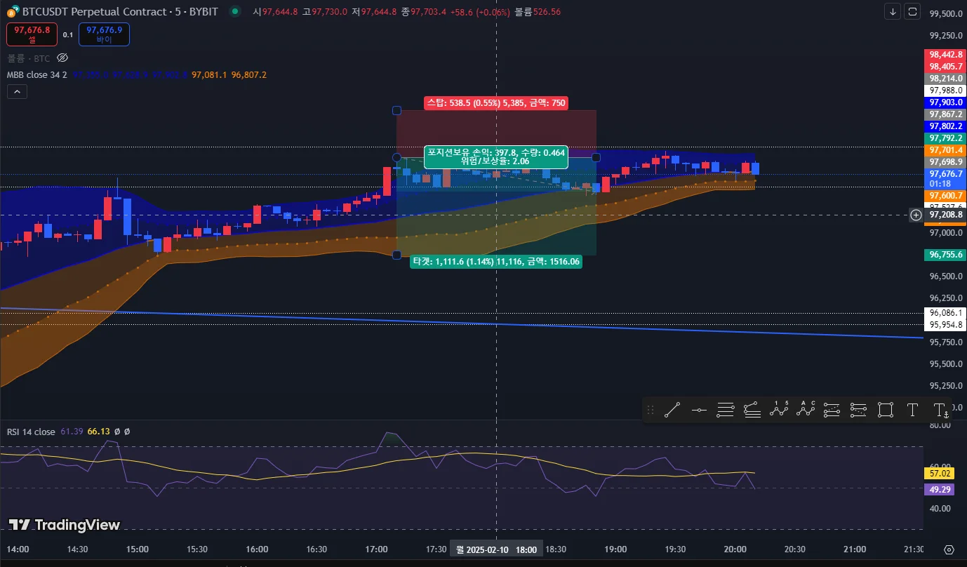 RSI와 볼린저밴드를 근거로 진입했는데,