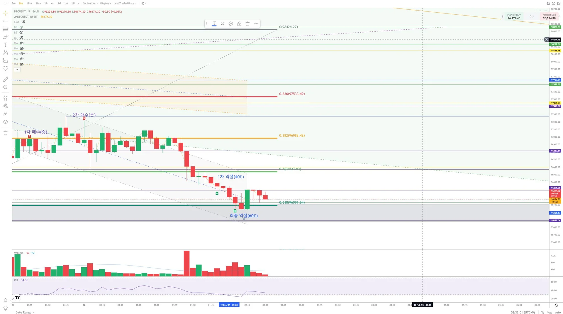 지지/저항/피보나치/RSI를 토대로 매매를 진행하였습니다.