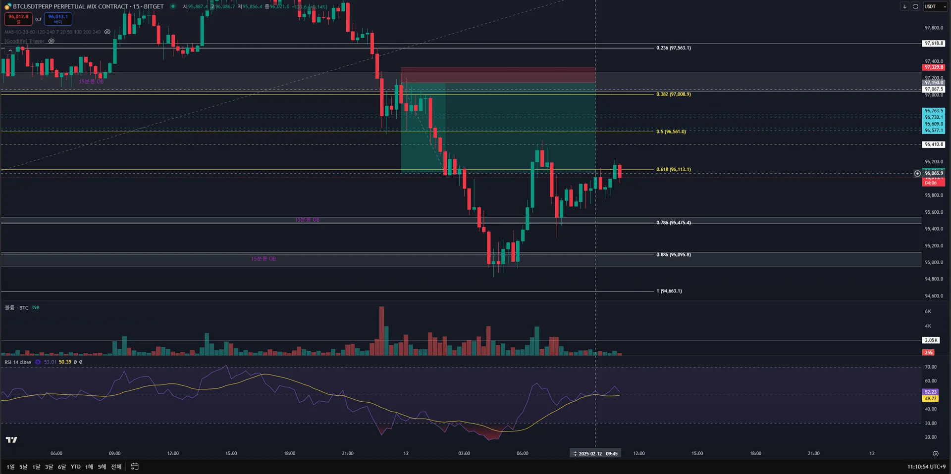 이전 작도한 15분봉 오더박스의 효력이 너무 좋아서 진입하였습니다.