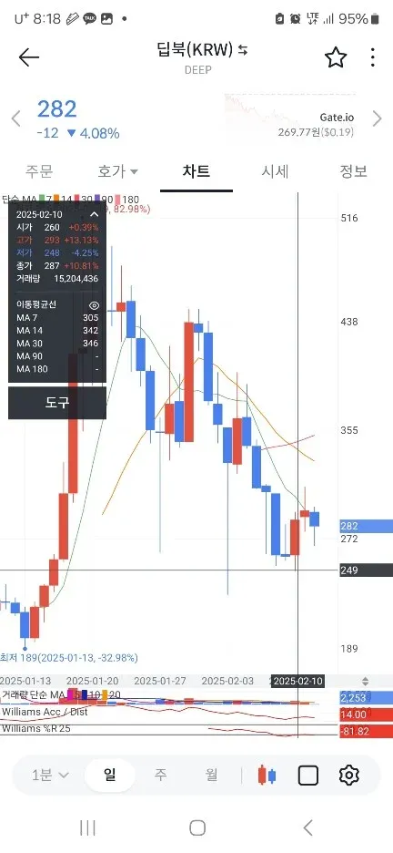 밑에 지지선 과 매물대 보고 더이상 떨어지지 않게다 생각해서 250에 진입 윗꼬리 매도세까지 오겠다는 생각에 익절 타이밍 놓치고 뒤늦게 내려갔을때 매도