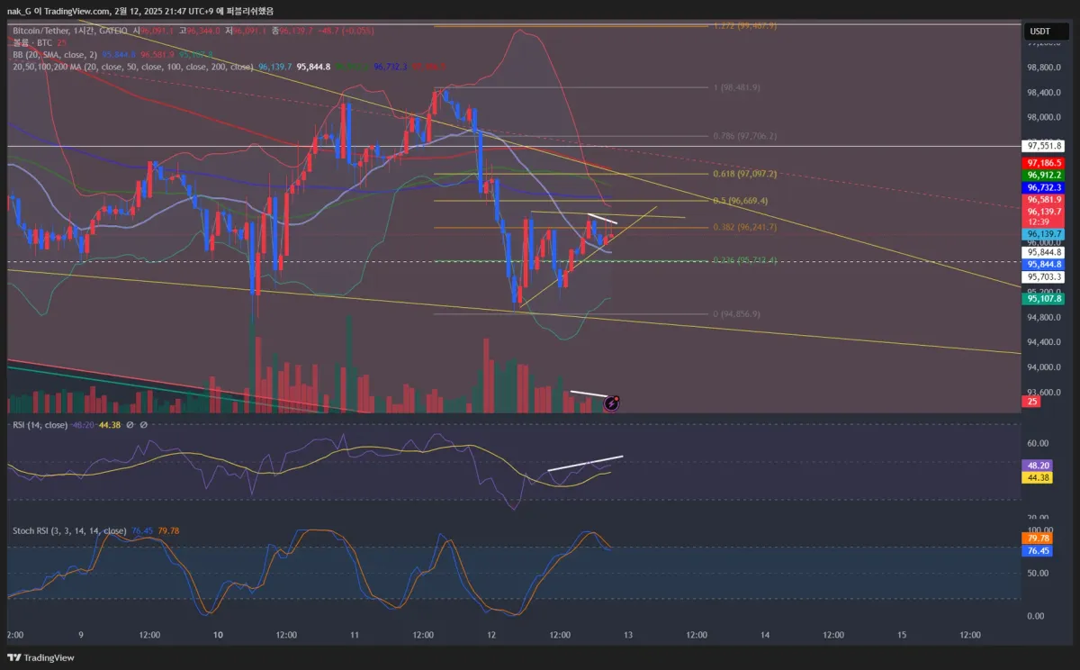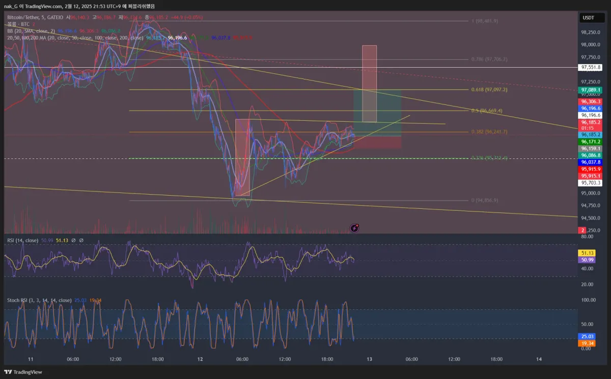 단기적으론 4시간봉의 추세선이자 618구간인 97k부근을 목표로 진입하였습니다.