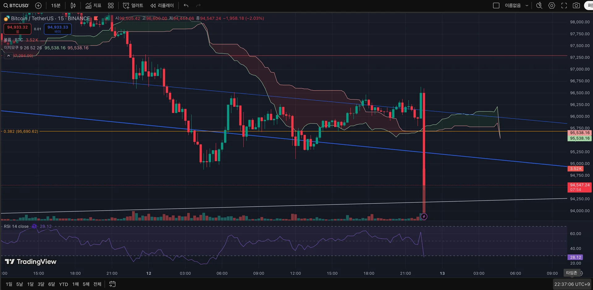 하락추세선에서 왔다갔다하는 모습을 보여 피보나치 0.382구간에서 들어갔습니다. cpi 발표직전 수익실현 완료했습니다.