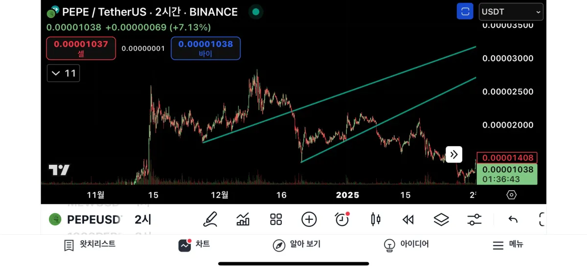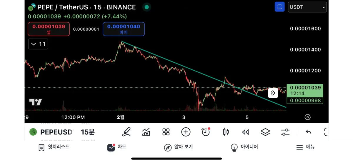 - 하락추세선을 뚫지 못하고 저항을 받음