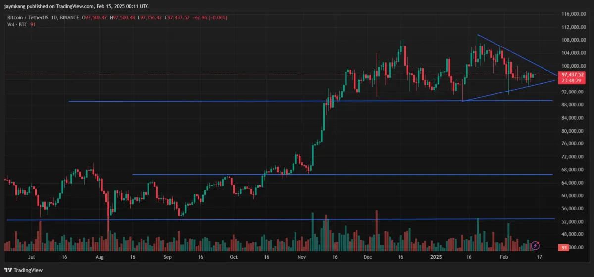 저에게는 그래프의 25년부터 고점 추세선과 저점 추세선이 저렇게 보이네요..