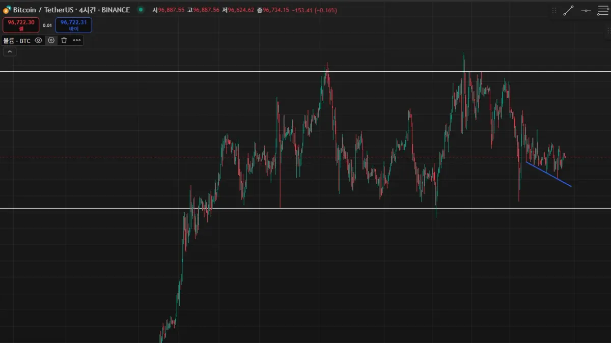 흰색으로 지지 저항선 작도 해보았고 고점도 저점도 계속 우하향하는 모습이 보입니다.