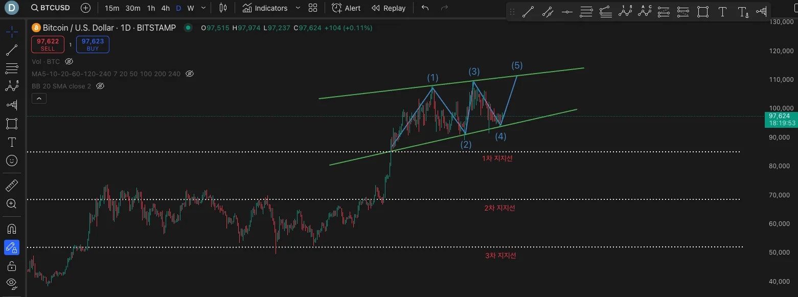 - 3차 지지선: 저항선 돌파 이후 세차례 하락을 막은 구간