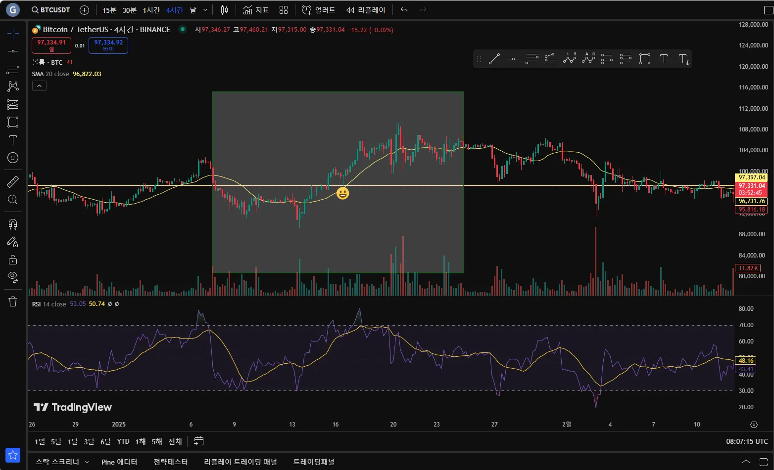 저는 2/15일 오후 4:30분 경 비트코인 차트로 작도를 했습니다.