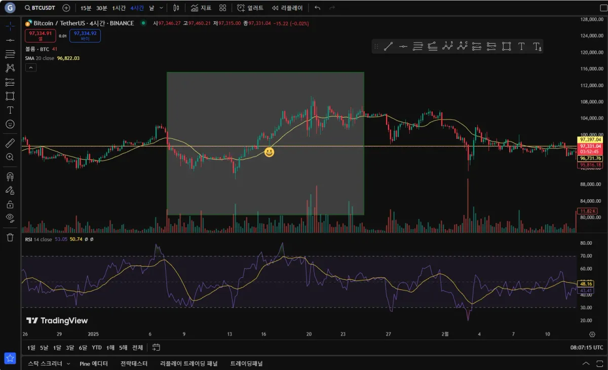 2번 이미지는 박스권 이전을 보니 상승, 하락도 보이더라구요. 이후 1번 이미지처럼 횡보가 보이니 다우이론상으로는 다시 상승추세가 오는건지 궁금하네요 :) (4시간)