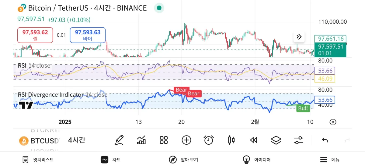 Rsi 과매수 과매도 지표 설정했습니다