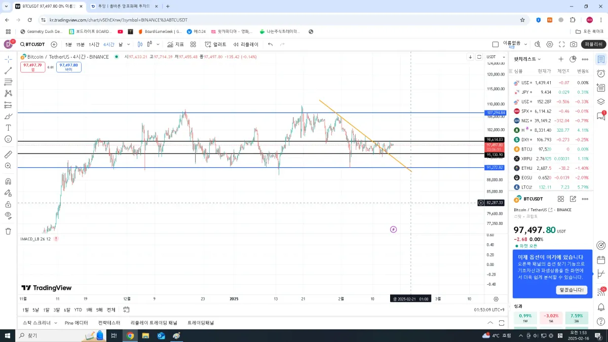 단기적인 주황색 추세선도 돌파했으니 검정색 저항선을 돌파하면 단기적인 매수관점으로 괜찮아 보입니다.