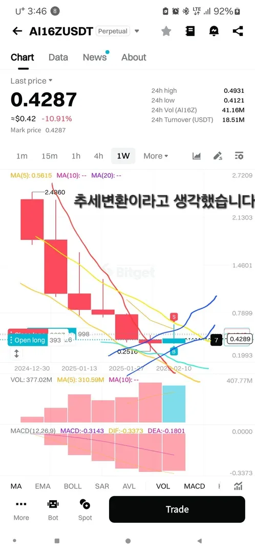 broccoliusdt코인이었습니다 그냥 보는순간 아무런 분석도 없이 아 이거 뭐 하루종일 떨어지겄네 하고 숏을 넣자마자 청산이 났습니다