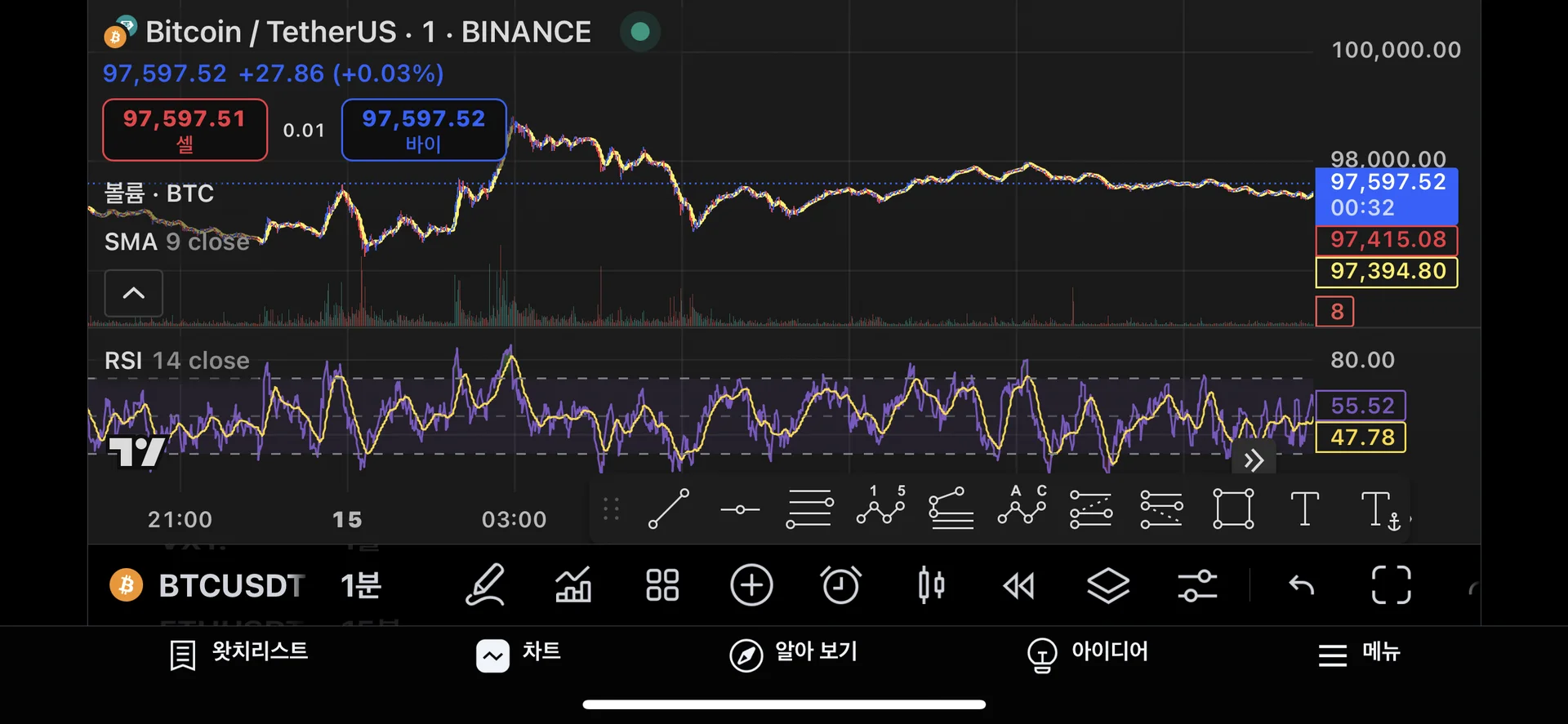 RSI보조지표 추가 완료했습니다