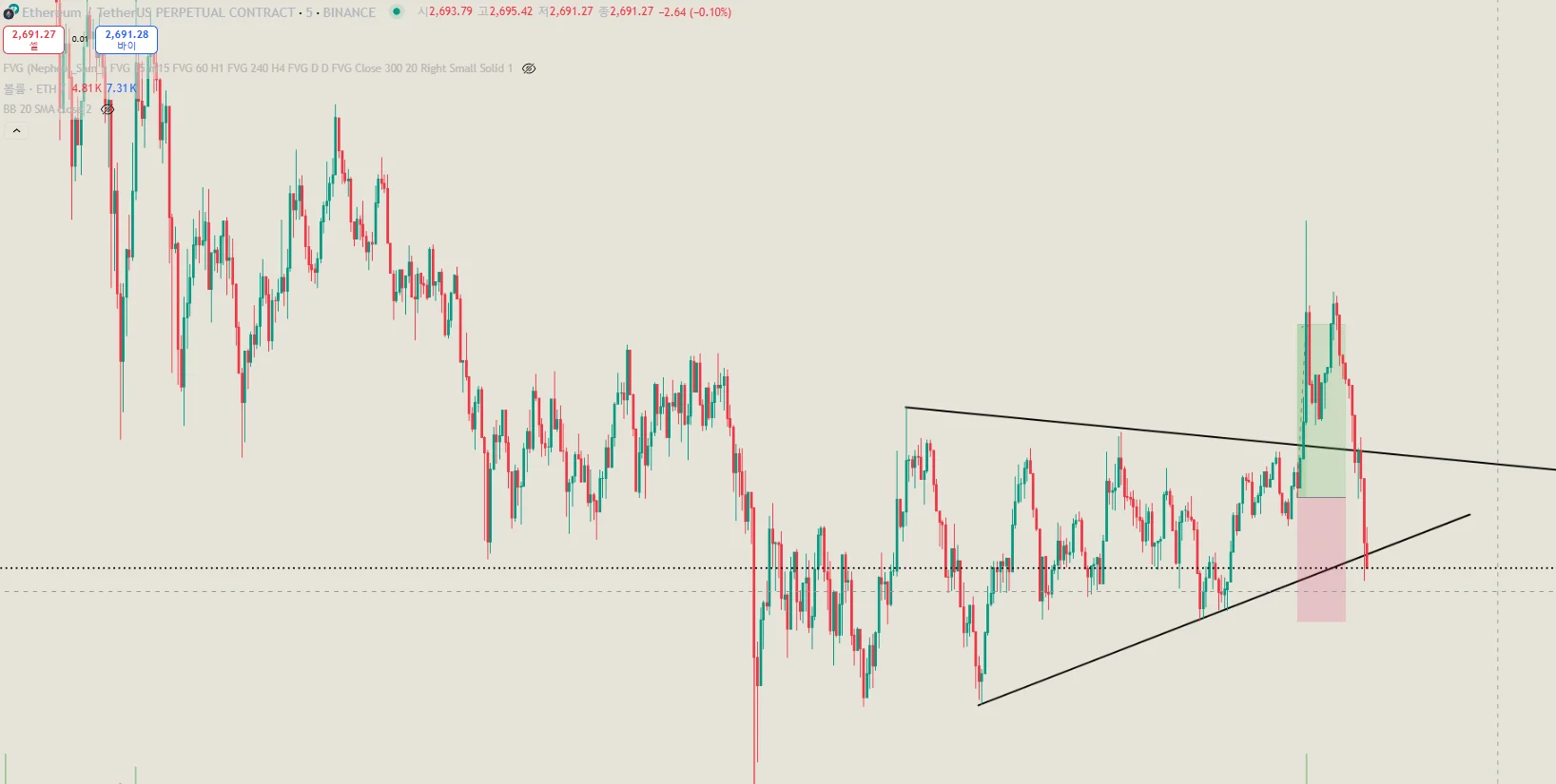 패턴에서 배운 삼각수렴 돌파가 나올 것으로 보고 진입 후 짧은 구간 익절 했습니다.