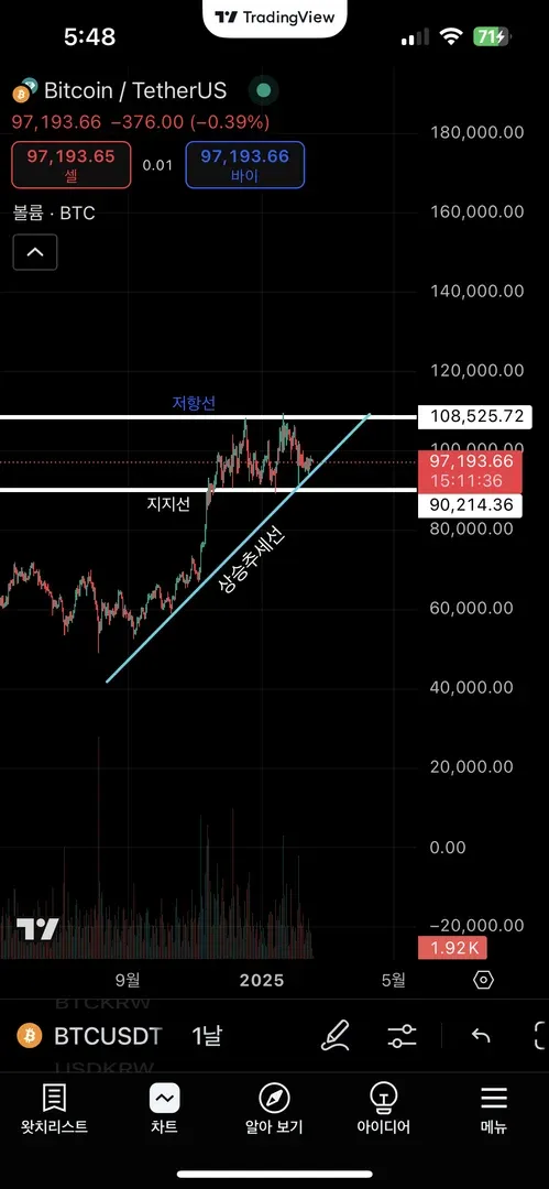 트레이딩뷰 차트 모바일로 해봤습니다!