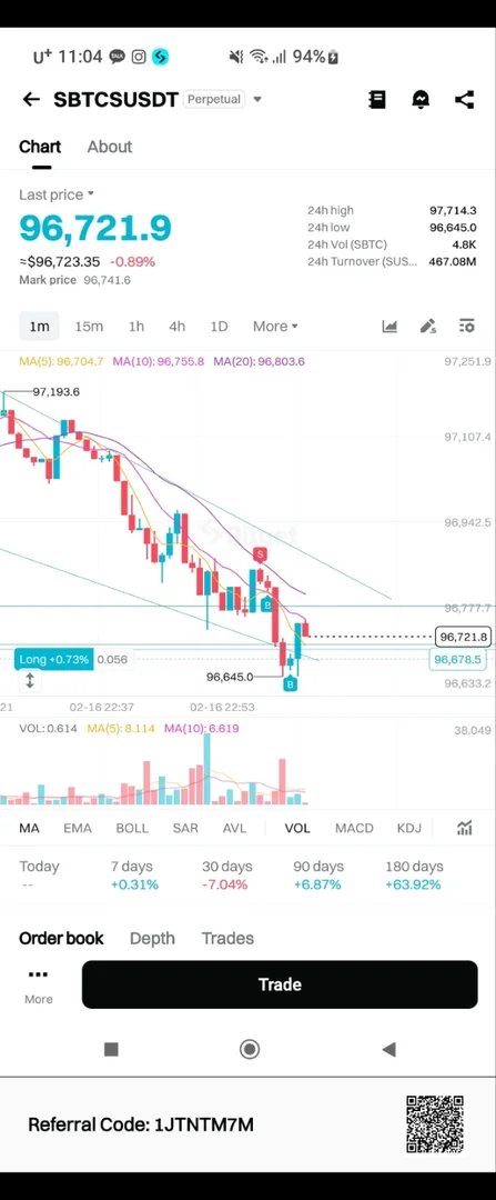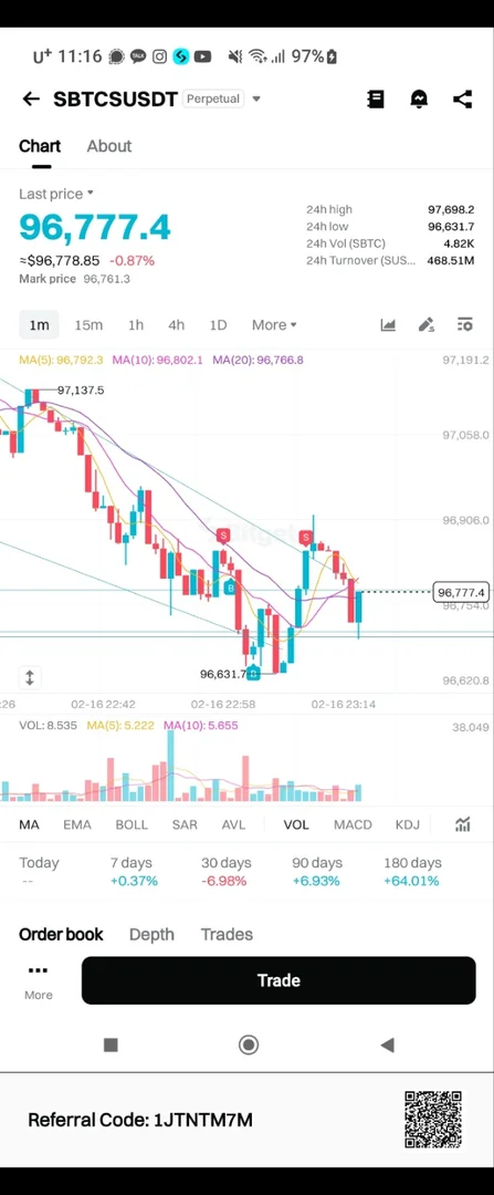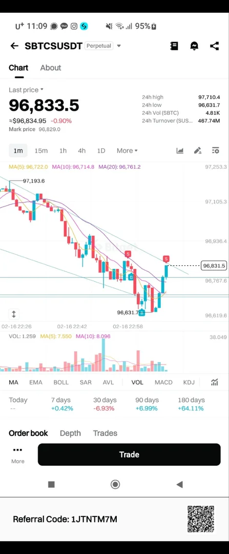 순전히 1분봉 차트 흐름만 참고하여 지지 저항 추세 작도하여 구간 내 매수매도 진행해 봤습니다