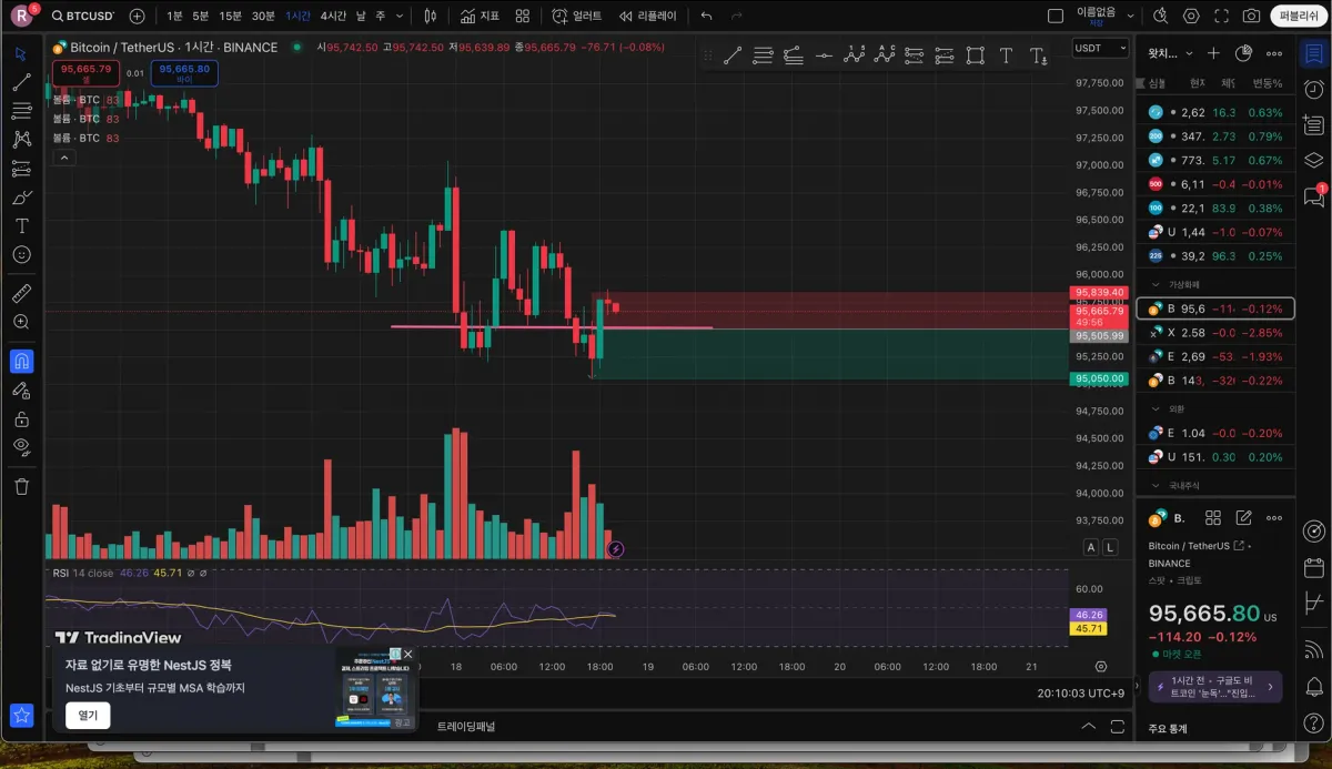 부족한 부분 중 하나인 차트 패턴에 대해서 공부하다가 실습 겸 업비트를 켰음.