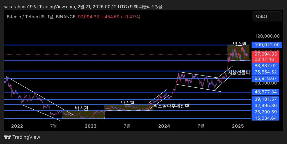 2024년 1월 고점(저항선)이 지지선으로 바뀌어 다시 한번 추세를 돌리고