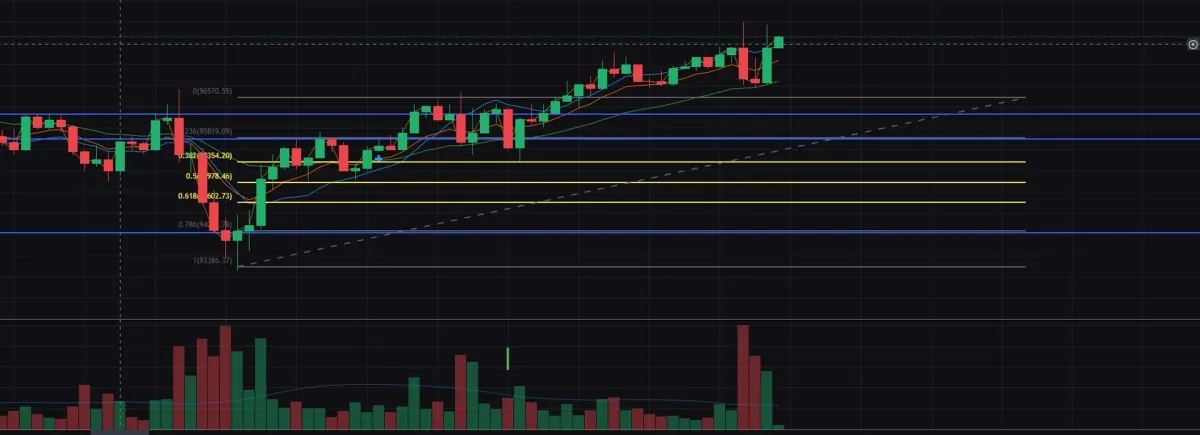 비트코인 1시간봉 기준으로하여 96,168.90에 진입하여 96500에서 저항을 받고 목표가 까지 내려갈줄알았는데 손절가를 터치하면서 손절이 발생했습니다