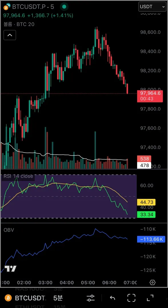 RSI와 오늘 특강에서 배운 OBV 지표도 함께 적용 했습니다.