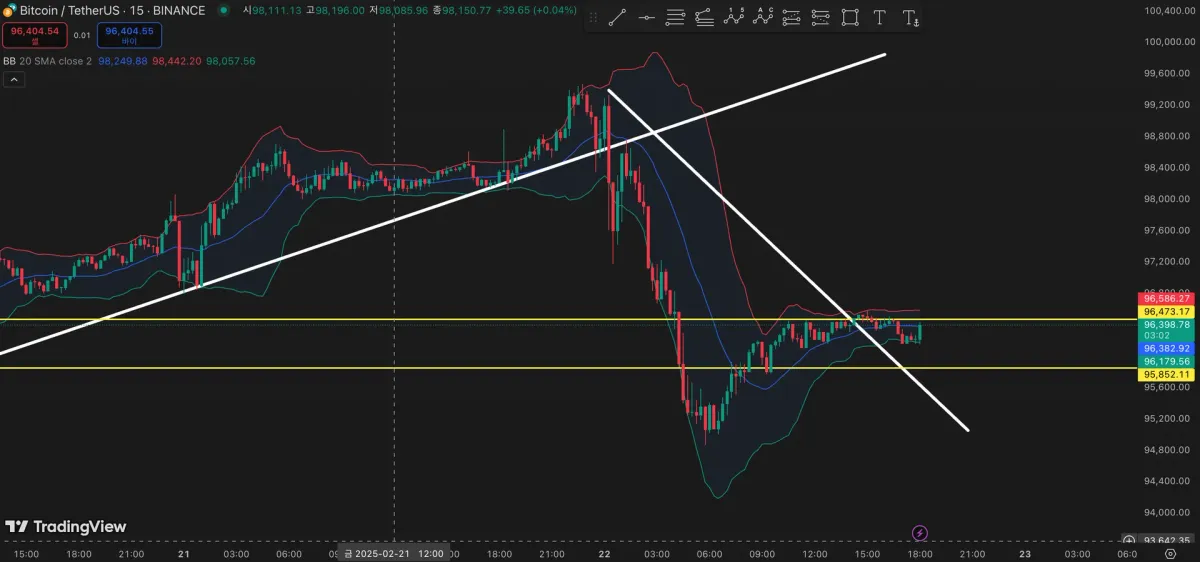 추세선과 볼린저 밴드를 통해 트레이딩뷰에 작도를 해보았습니다.