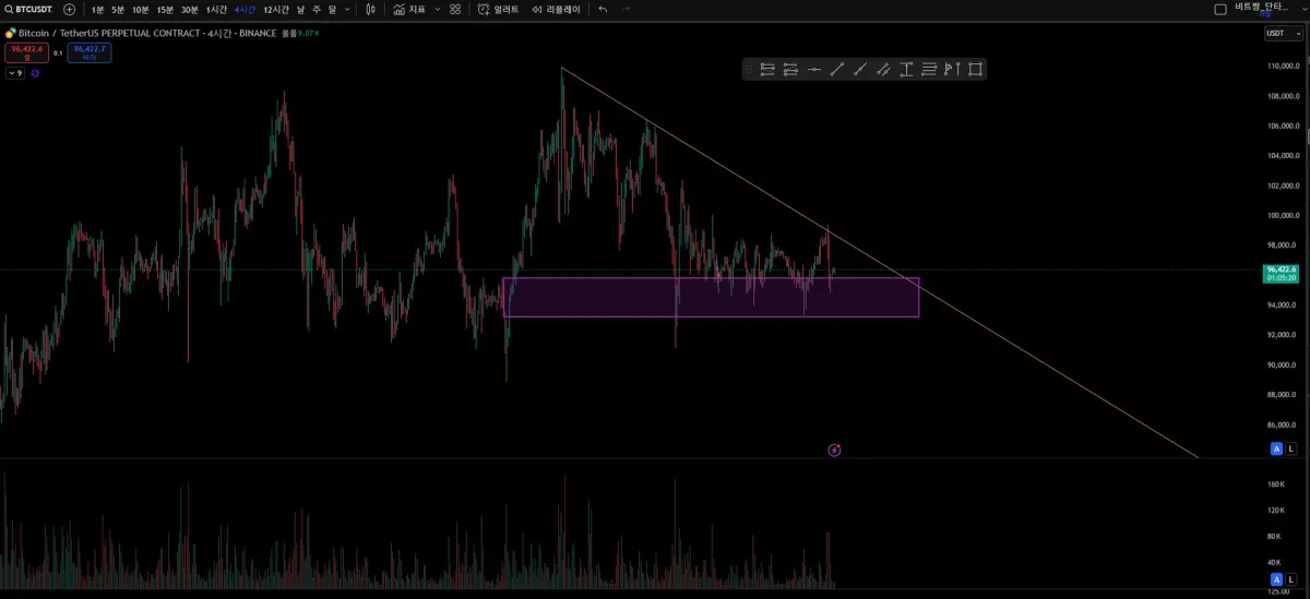 4시간봉상 하락 추세선을 따르고 있지만,
