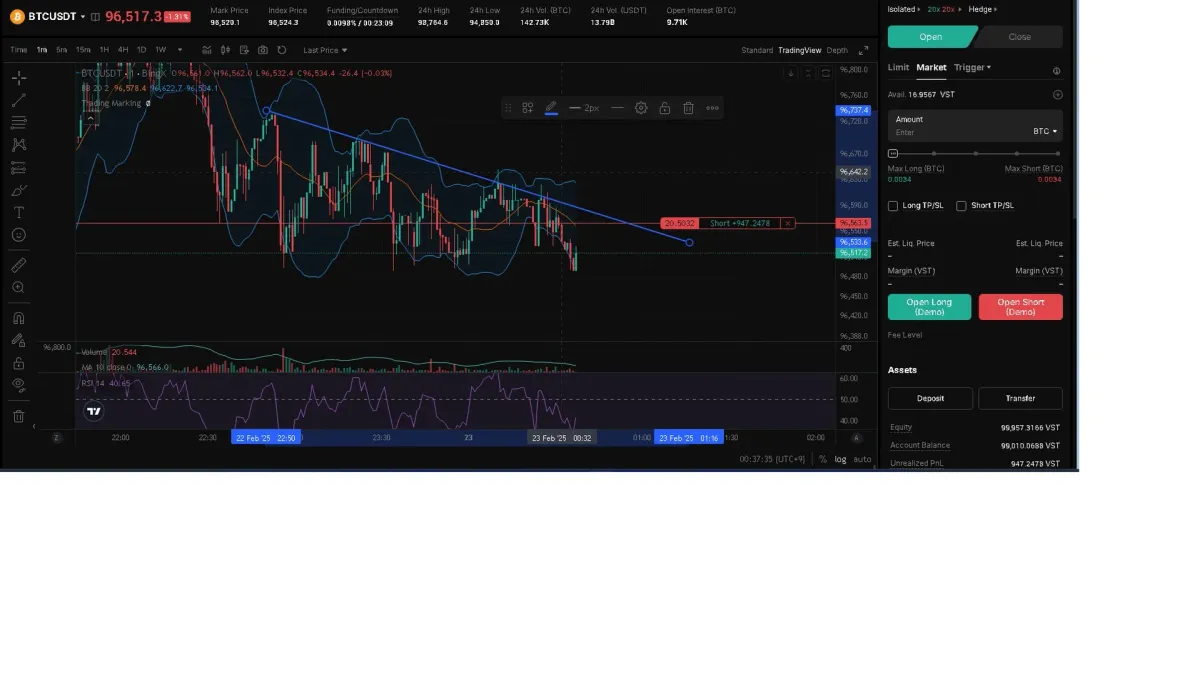 고점을 봤을 때 하락일 것 같아서 하락을 예상으로 한번 데모 트레이딩을 해봤습니다.