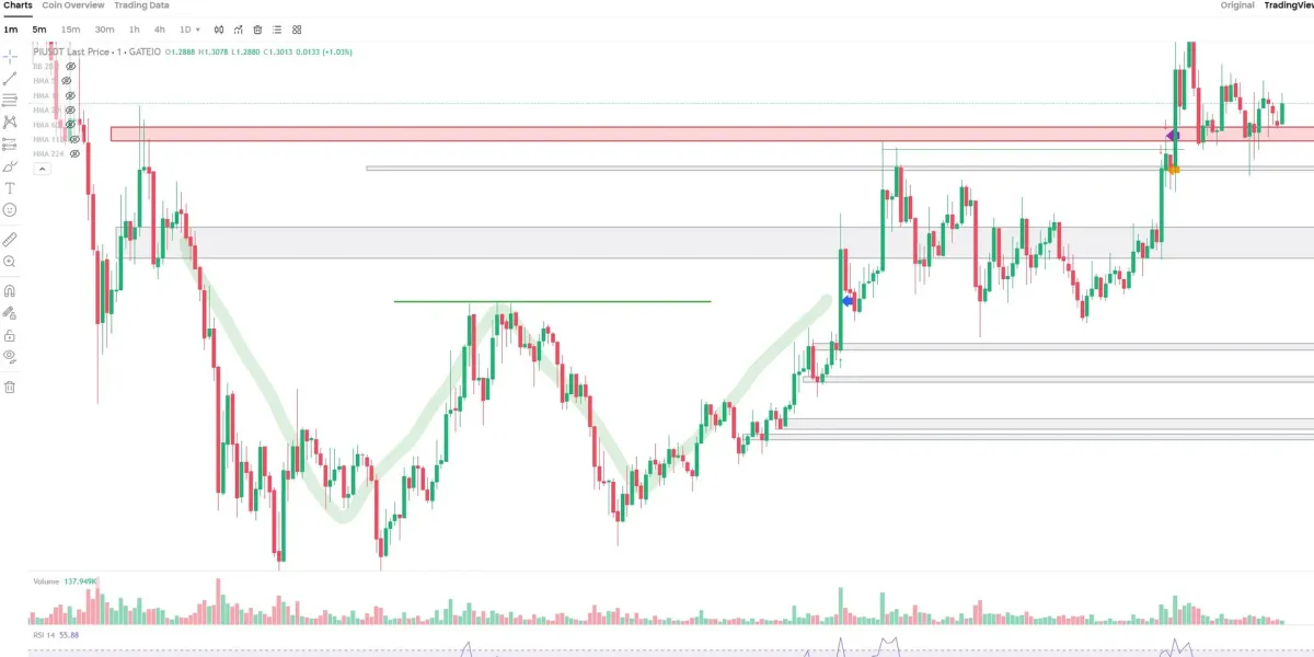 파이코인(PI)이 변동성이 강하여 재미로 한번 해보고 싶어 차트를 살펴보았는데,