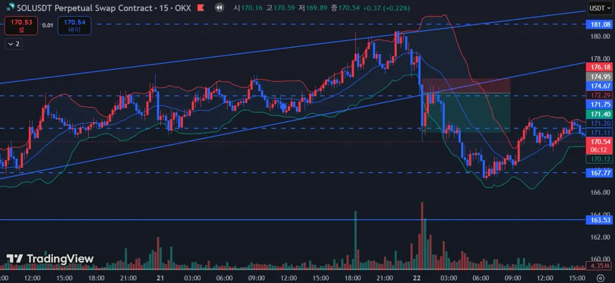 집입 근거는 하단추세선을 강하게 돌파 후 리테스트가 나와 진입하였고 고레버리지로 시드의 4%만 진입했습니다!