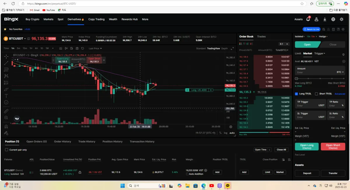 모의투자이지만 처음으로 거래소사이트 들어가서 매매란 것을 해봤습니다. 뭐가뭔지도 몰라서 포털사이트에 단어들 검색해 가면서 tp와 sl설정하고 양설정하고 들어가보았네요.