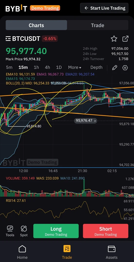 어센딩 트라이앵글 + 거래량 수렴 -> 롱포지션 진입 및 익절(데모 트레이딩)