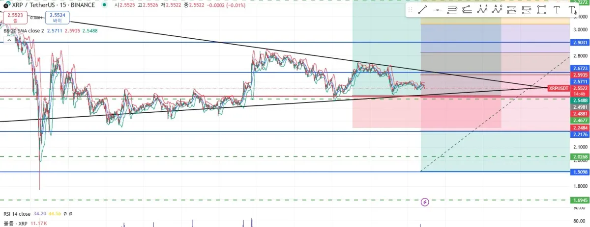 2.5481에 진입하려 하다가 지지선에 걸려 안내려 오는 것 같아서 조급한 마음에 목표금액을 높여 2.6484로 설정을 바꿨습니다.