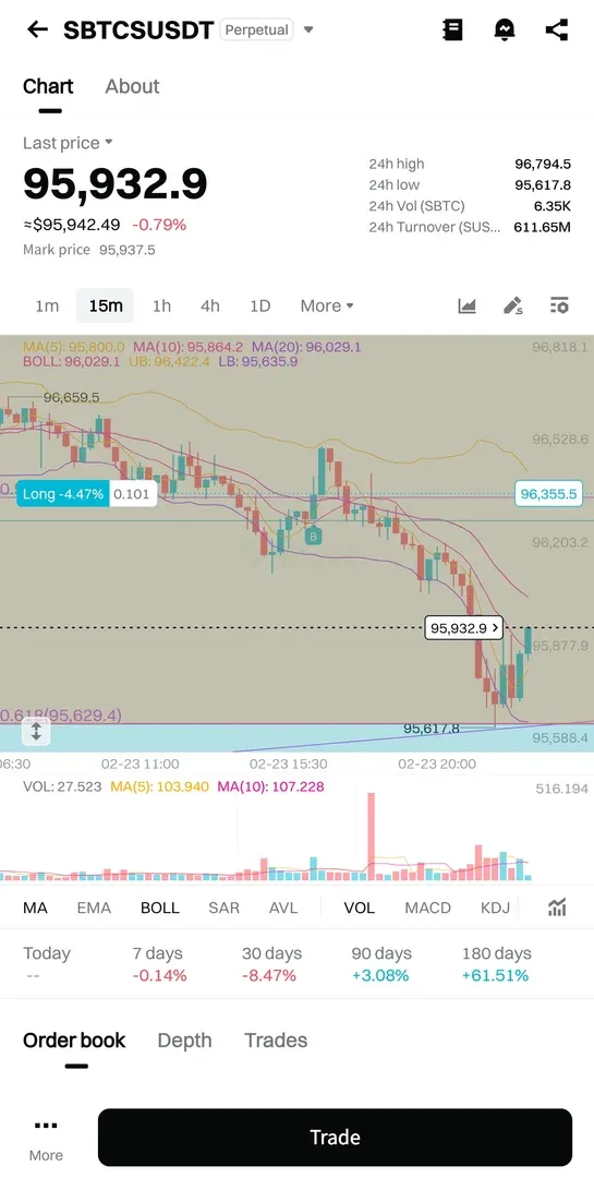 추세선을 그었을 때 지지선에서 지지받고 올라가는 중이라 생각해서 진입하였으나 추세 바닥까지 내려가고 있음.