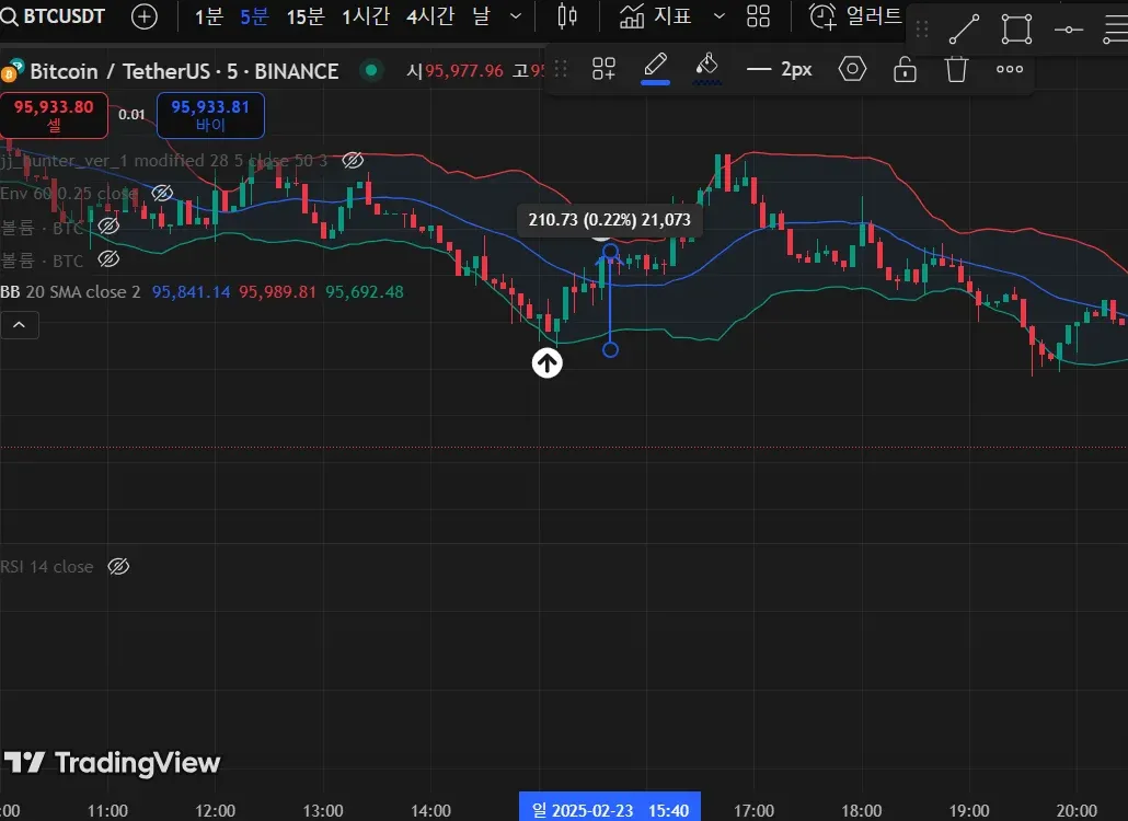 볼린저밴드 하단진입, 평균선 돌파후 익절 (0.22% * 30X = 6.6%수익)