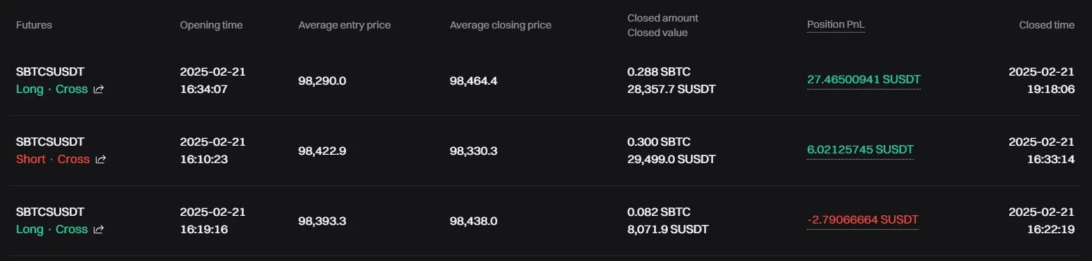 첫번째 손절 부분은 수수료를 계산을 하지 않고 포지션 종료해 마이너스이나 그뒤부턴 수수료를 포함한 익절 구간을 다시 계산하였습니다
