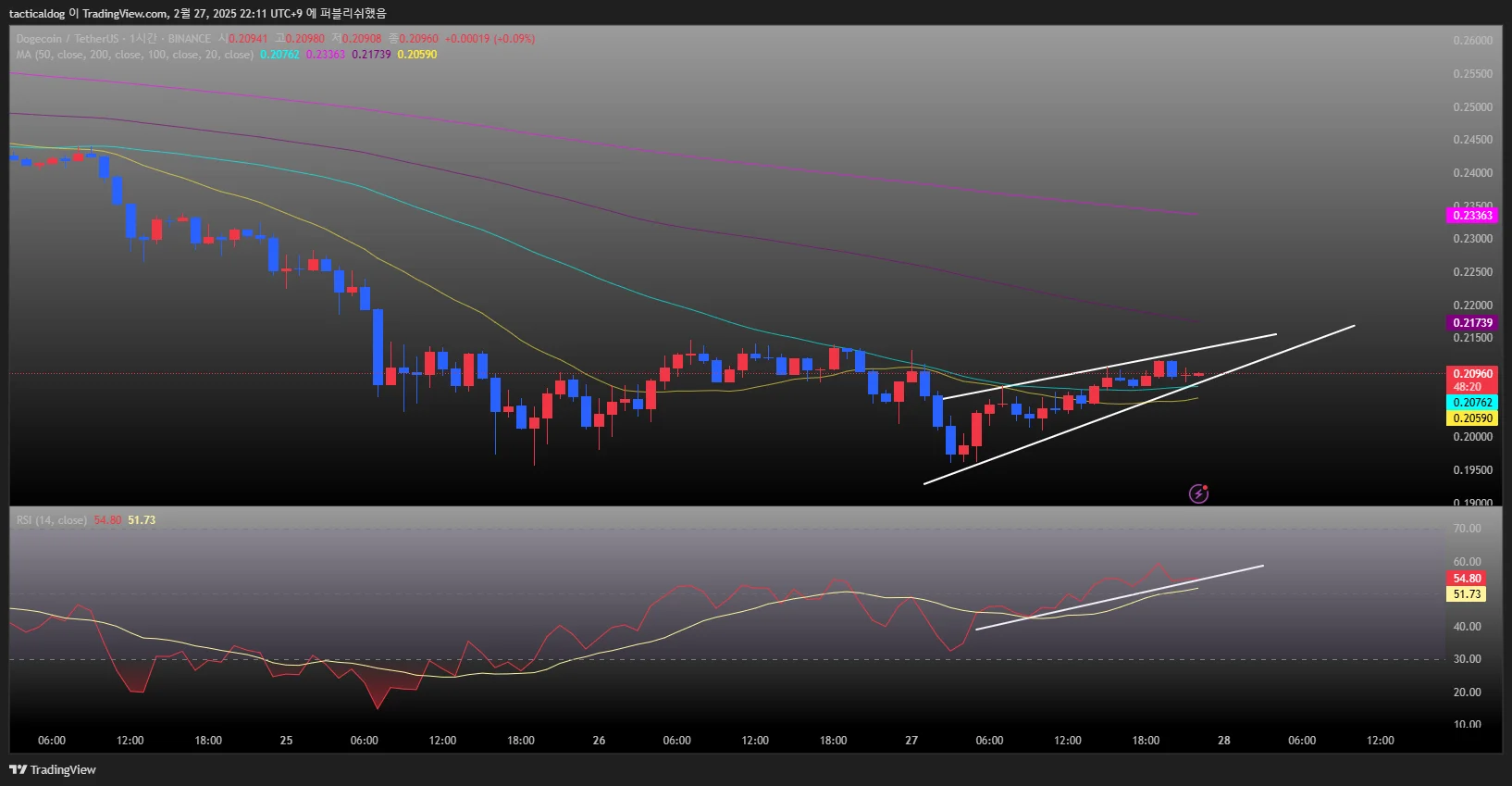 *라이징 웻지에 상승다이버전스로 보이는데 이러한경우는 어떻게 움직일것으로 예측이되나요?