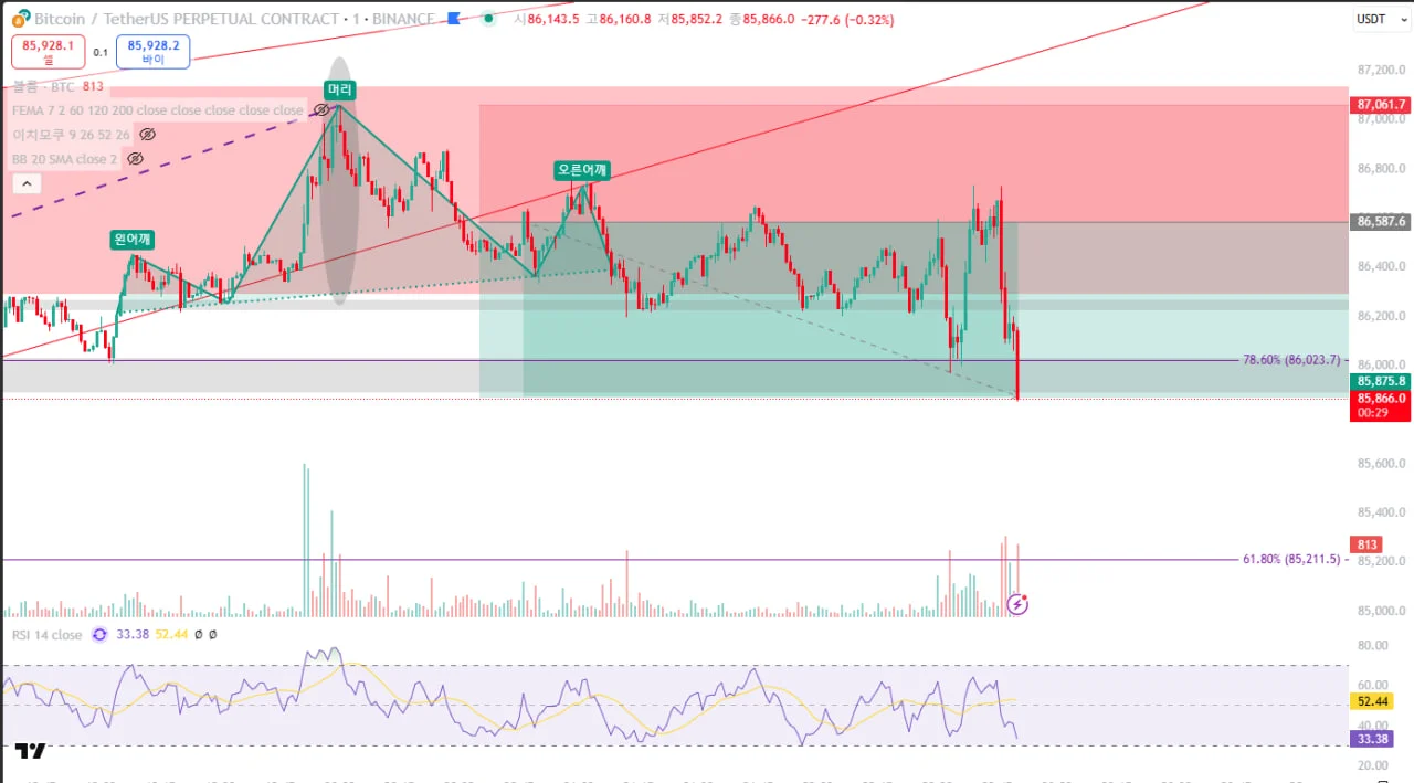 5) 1분봉 양봉??거래량이 있었지만 동그라미친 곳의 캔들이 ㅗ 한번 눌리고 도지모양으로 나와서 이건 하방인 것 같다고 직감했습니다.