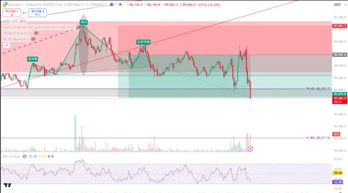 3) 1분봉에서 이전 고점을 못높임