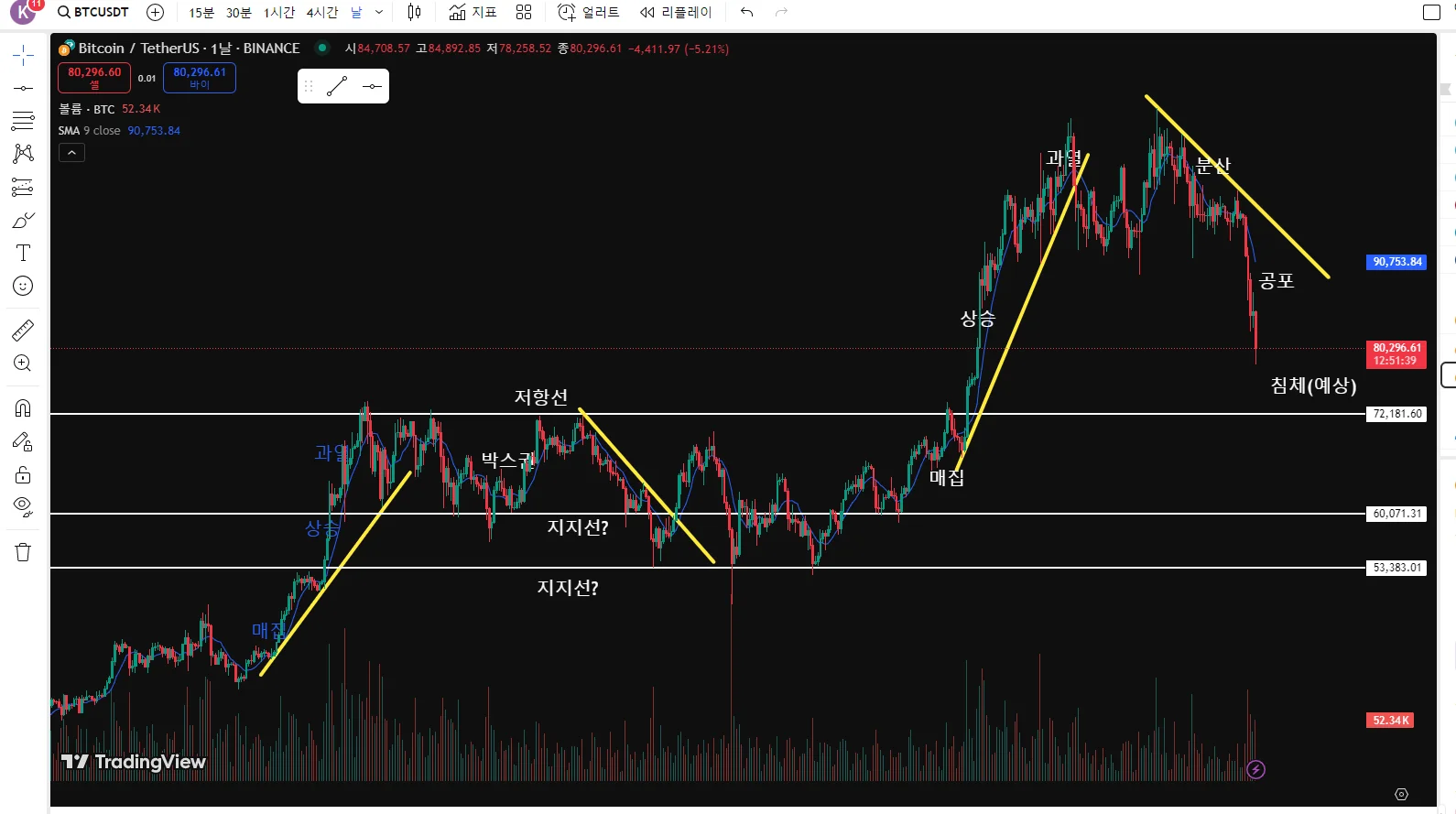 지금 비트코인 시장은 공포 국면에서 침체 국면으로 넘어가는 중이라고 생각합니다