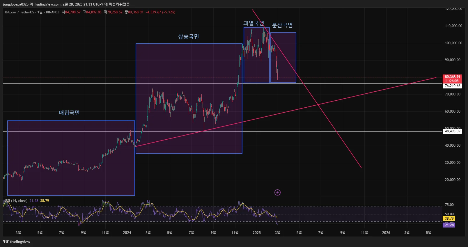 현재시점이 분산국면인지 공포국면인지는 잘 모르겠습니다. 6단계 국면을 모두 거친 과거의 차트에서는 조금은 보이는데 현재 진행중인 차트에서는 어렵네요.